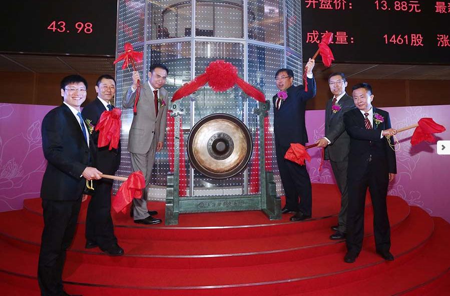 領導致辭后,三孚股份董事長孫任靖與上海證券交易所領導簽訂《上市協議書》,并互贈上市紀念品。上午9時30分整,伴隨著出席貴賓在上交所交易大廳鳴鑼的敲響,宣告三孚股份首次公開發行股票上市掛牌儀式取得圓滿成功!